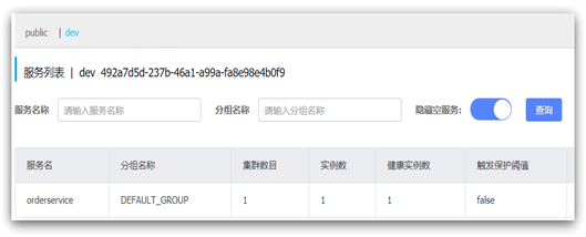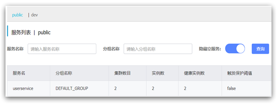 默认情况下,所有service、data、group都在同一个namespace,名为public: