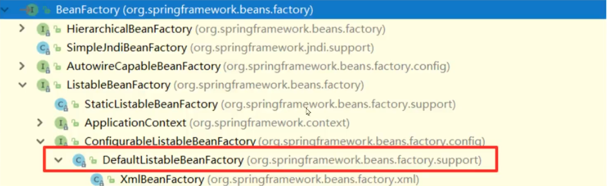 具体实现为DefaultListableBeanFactory,而AppicationContext内部维护的便是它。