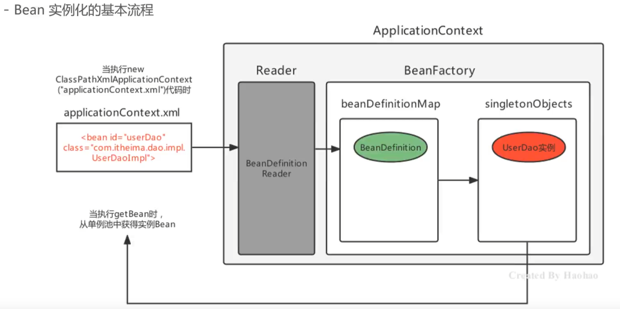 - 当你调用getBrean方法时,从SingletonObjects取出Bean实例对象